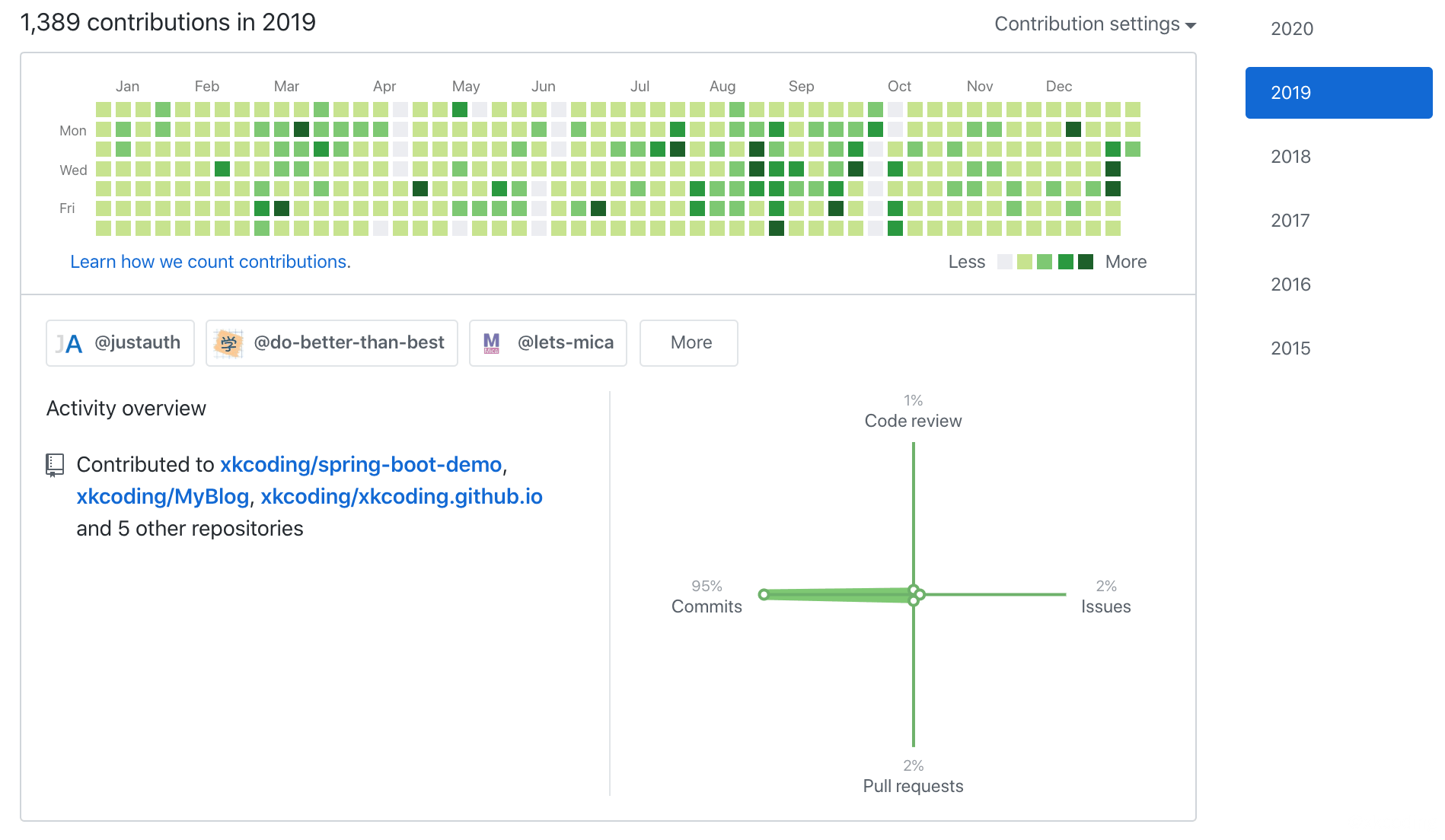 今年算是做到了去年立的一个 Flag,就是尽量保证每天都可以在 GitHub 上写点东西。